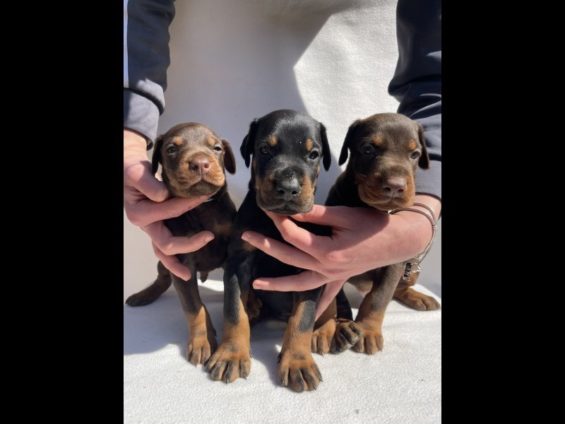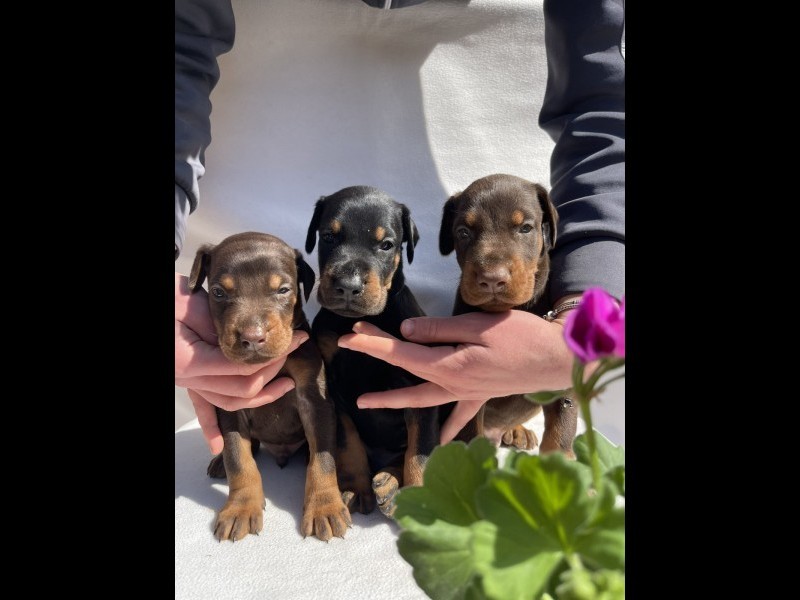 Štenci dobermana oštenjeni 13.02.2026. Očišćeni od parazita, vakcinisani Dostupna tri muzijaka- dva braon i crni i tri zenke- dve crne i braon Otac: Lucas Ginga House (Di Baixo Mino Dior x Larissa Zorya Di Stelle) Majka: Bela (Roberto Rodrigues Od Zvezdanog Gaja x Glory V. Zogohof) Oba roditelja su ocenjena, sa uradjenim testovima i snimljenim kukovima Cena na upit. Kontakt tel: +38162564214 E-mail: rankovanja0@gmail.com Lokacija: Uljma, opština Vršac