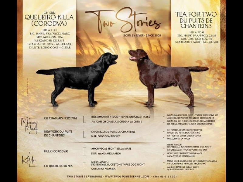 Sa poštovanjem odgaivačnica labrador retrivera TWO STORIES KENNEL FCI 5522 vam predstavlja svoje novo leglo oštenjeno 23.09.2025. Štence imamo u žutoj i crnoj boji (pet crnih mužjaka, dva žuta mužjaka i jedna crna ženke) Roditelji štenadi su izuzetnog eksterijernog izgleda i karakternih osobina koje su propisane standardom rase. Izuzetno pažljivi prema deci i odani porodici kojoj pripadaju. Roditelji štenadi kao i njihovi preci imaju uredne snimke kukova i laktova i čiste genetske testove. Štenci se preuzimaju sa rodovnikom, potvrdom o imunizaciji, pasošem i pregledom veterinara. Kontakt podaci: tel. 0656161001 Vlada tel. 0631182821 Lina mail: twostories.kennel@gmail.com website: http://www.twostorieskennel.com/ Adr:56 Rodoljuba br 49 Skela, Obrenovac, Srbija Sa poštovanjem Two Stories Kennel